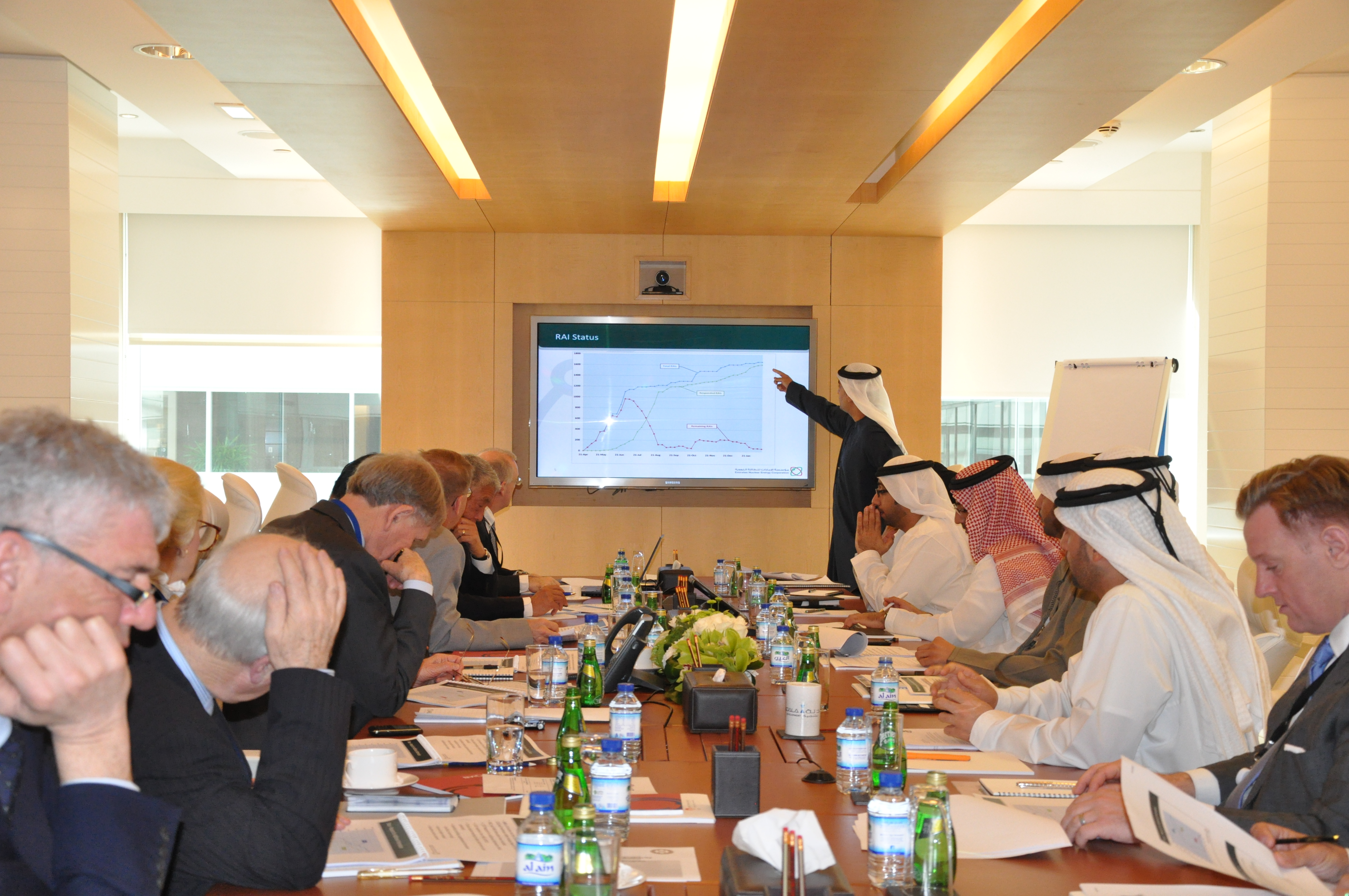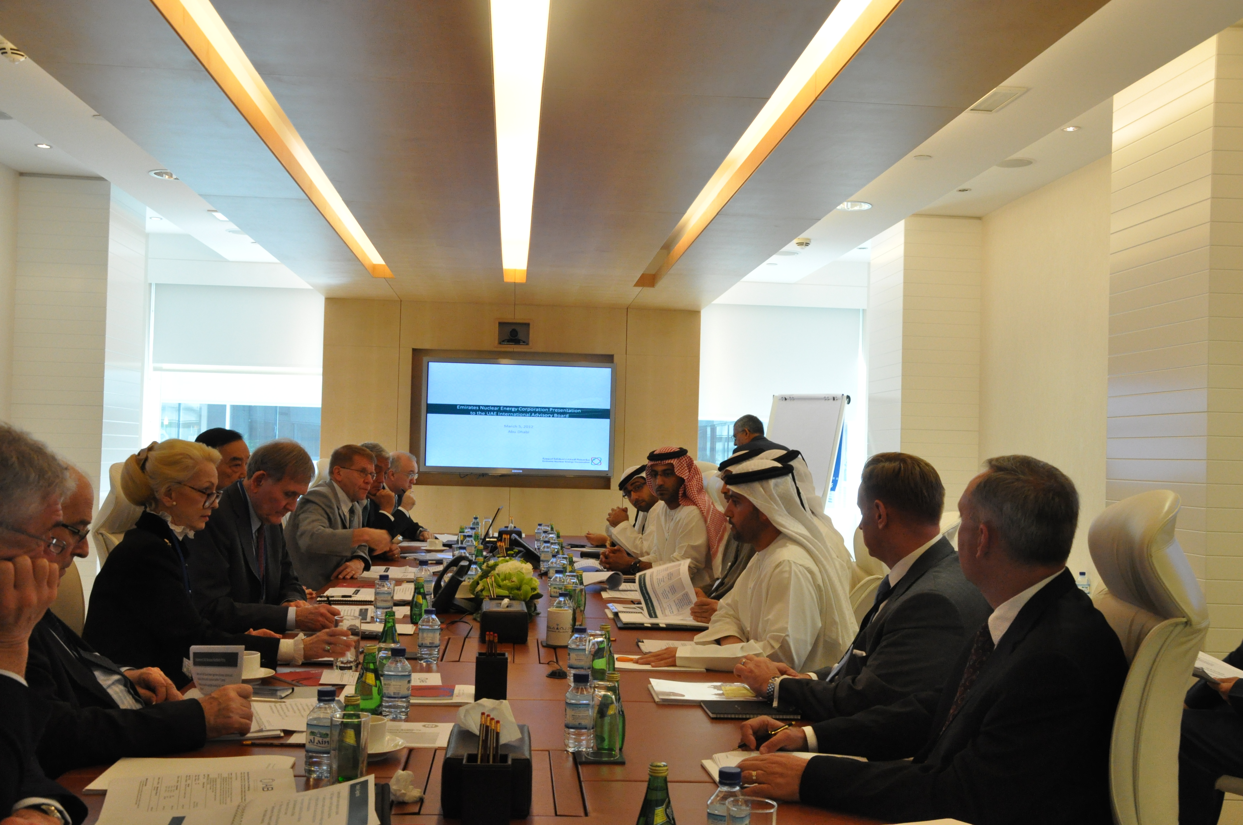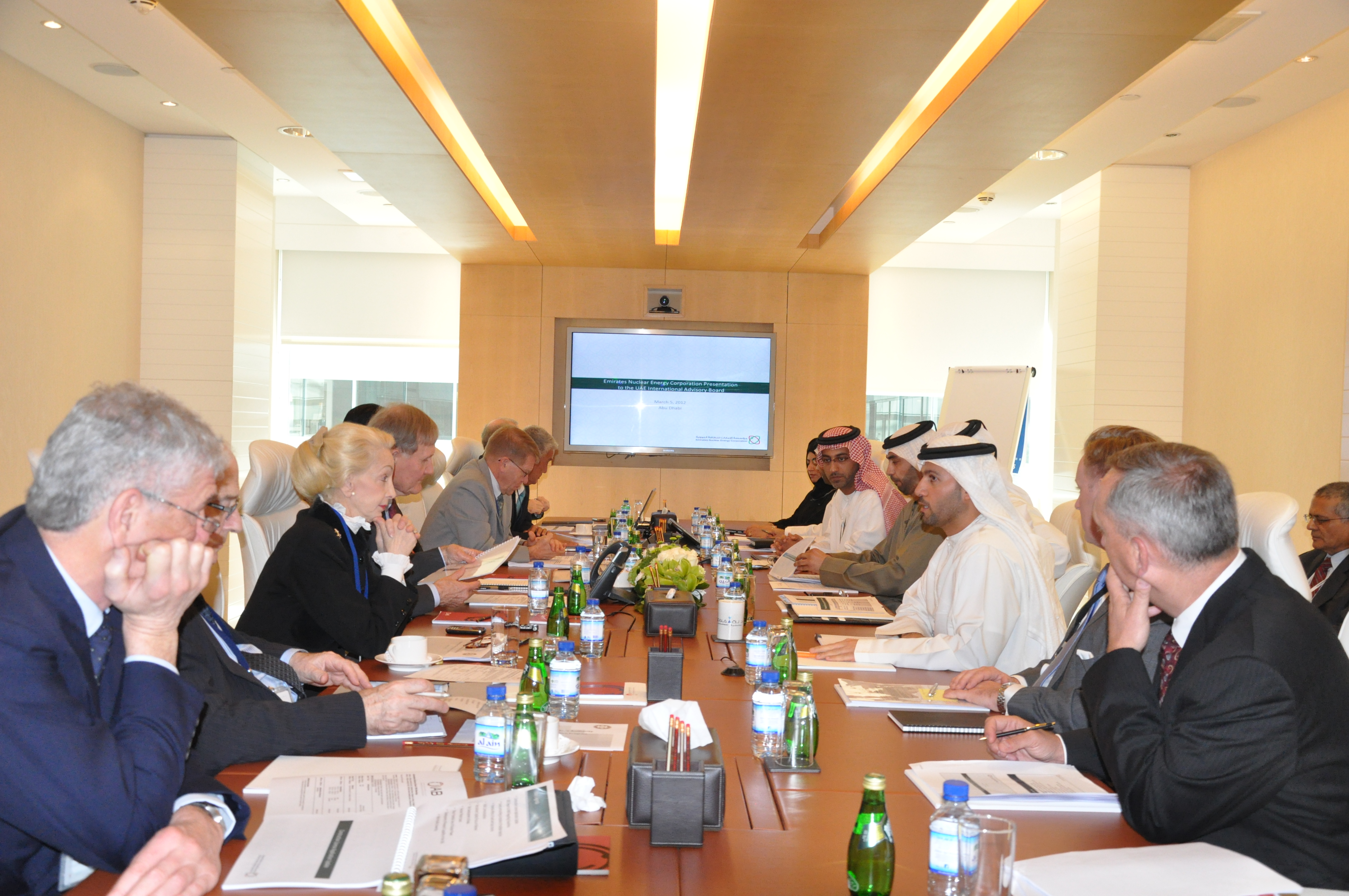 وفي اليوم التالي، وقبل تقديم مؤسسة الإمارات للطاقة النووية عرضها الإيضاحي، اجتمع المجلس مع معالي خلدون المبارك، رئيس مجلس إدارة مؤسسة الإمارات للطاقة النووية ورئيس جهاز الشؤون التنفيذية حيث أعرب فيه بأنه لم يكن بالإمكان تحقيق أهداف المشروع النووي الإماراتي السلمي من دون المشورة والتوصيات التي قدمها المجلس طوال هذه السنوات.